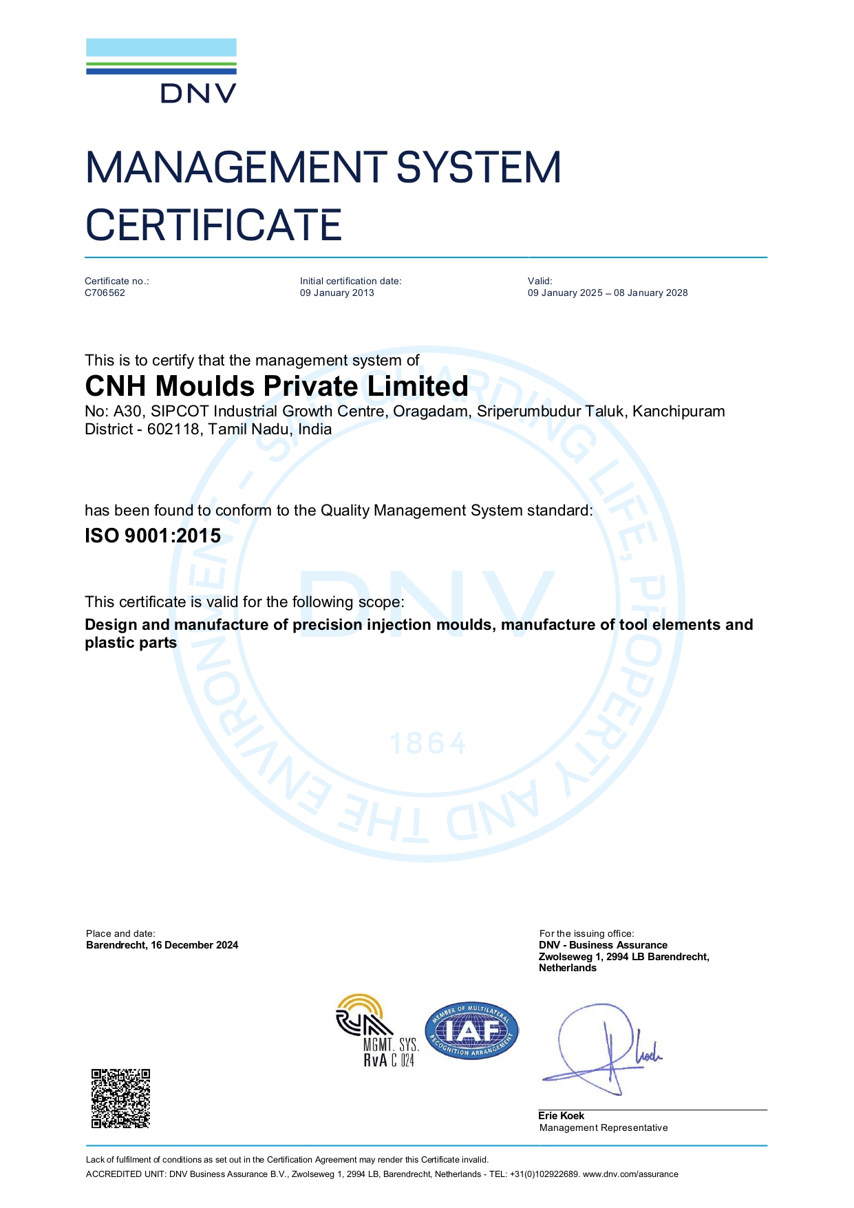 "CNH MOULDS PVT LTD" is committed to Design and Manufacture Moulds & Mould parts that meets and exceeds the customer expectations with On-Time Delivery, Quality and Cost Effectiveness. This is achieved through Continual Improvement of the QMS and feedback from the interested parties by ensuring the Risks and Opportunities that can affect the business and the ability to enhance customer satisfaction.
